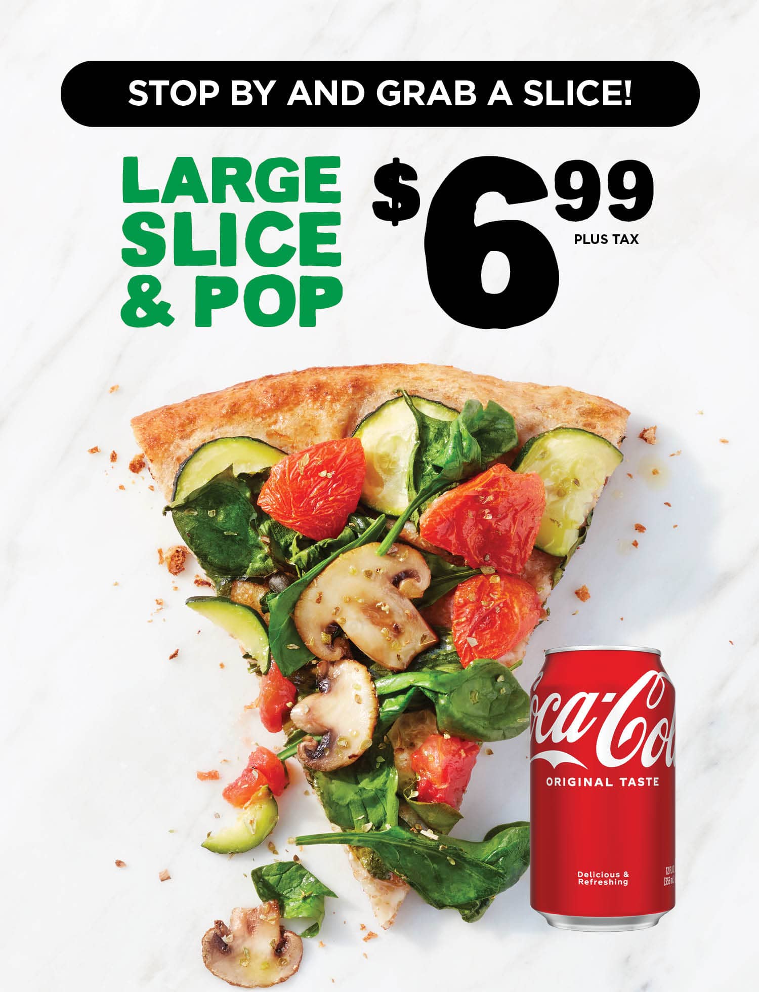 Green Peppers, Organic Fresh Mushrooms, Tomatoes (Herbed), Vegan Cheese and Pizzaiolo Tomato Sauce - 170-240 cals/slice